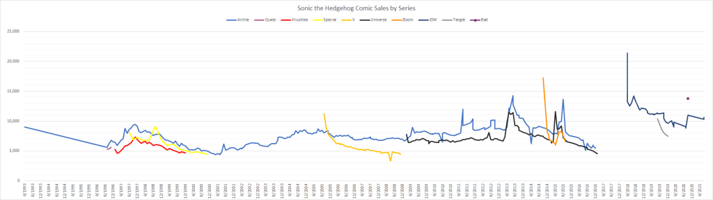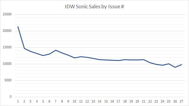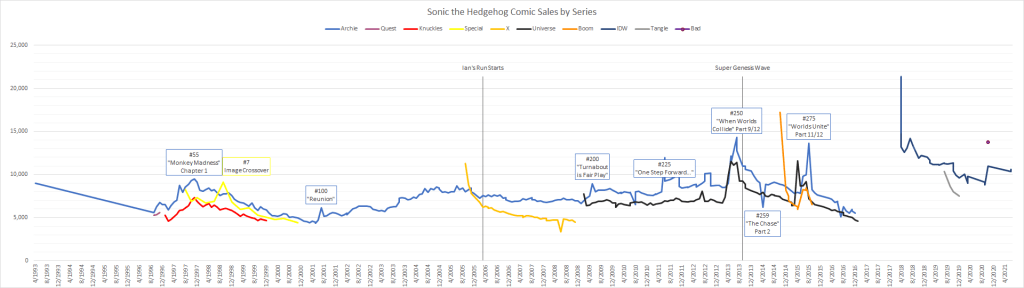 For a comparison of Sonic comic sales over time between both Archie and IDW publishers, see the updated plain and annotated charts below.